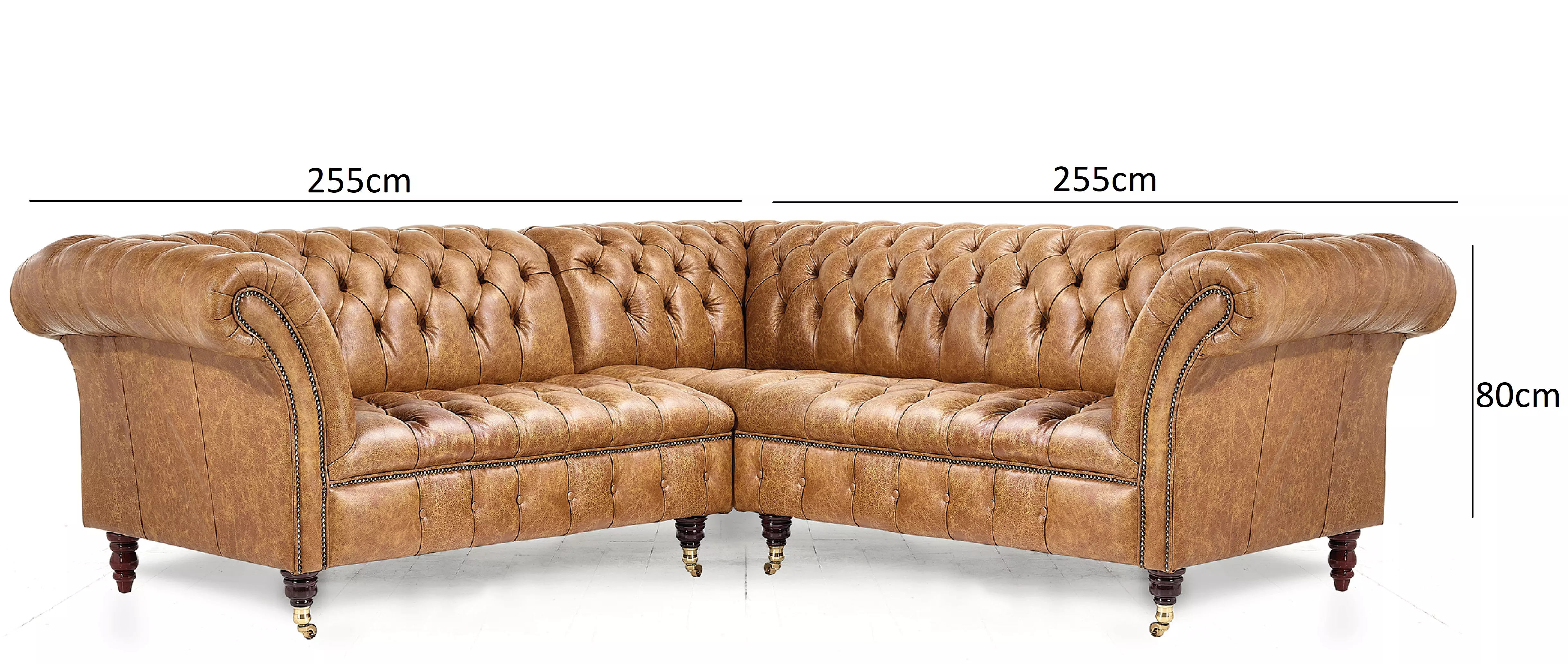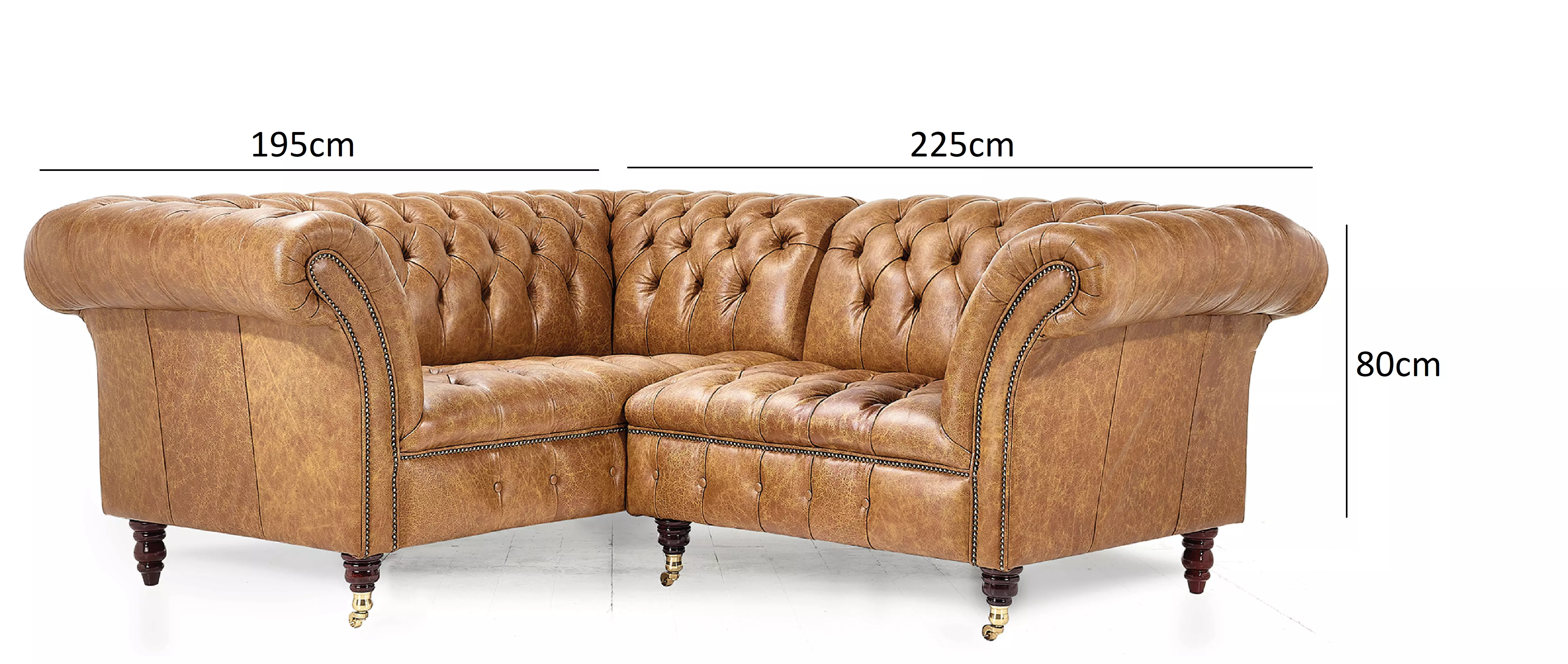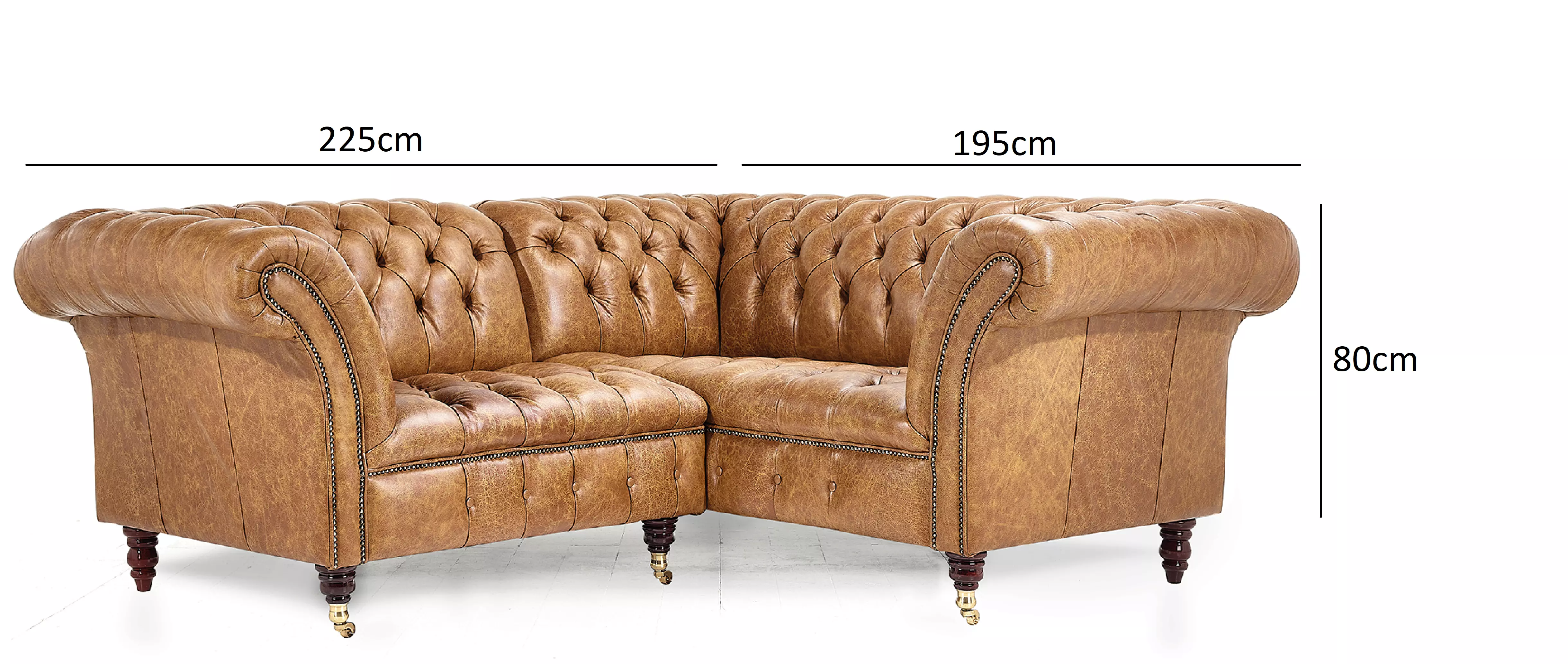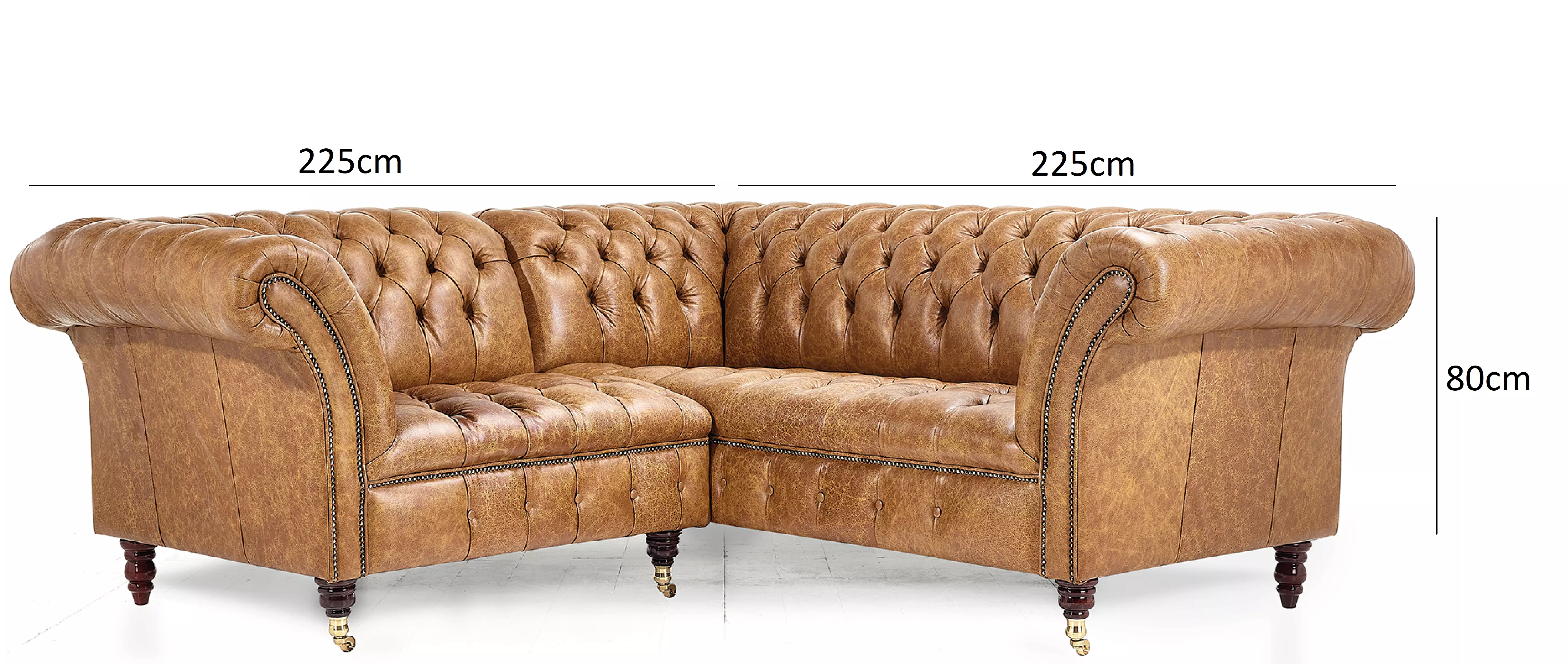 Even grander in quality and proportion, the Blenheim corner sofa is sure to make a bold and distinguished statement in any space. The Blenheim is favoured for its traditional silhouette with its deep buttoned seat and back, single button border and studded detailing. We have reimagined a number of our best sellers into corner units, perfect for reception rooms and larger spaces, its tilted back and fixed button seat ensures a firmer and more supportive sit while maintaining the signature style of a quality Chesterfield.