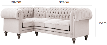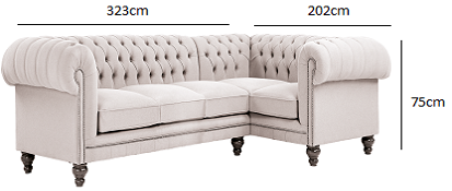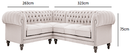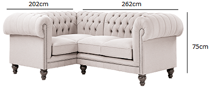 One of our best-selling models the Hampton combines the elegance of a traditional Chesterfield model with subtle contemporary alterations. At long last we have created several standard corner options of this best-seller brand new to our collection. Don’t worry this corner chesterfield brings with it the great style and comfort of the Hampton, with super spacious seating for a truly homely feel. Its straight back and luxe seat cushions give the Hampton a relaxed support with a soft sit, making it one of our comfiest Chesterfield models. While traditional studding and bordering to the bottom exude traditional Chesterfield poise. Available as both a right and left facing corner across 5 different styles, the Hampton Corner Chesterfield is the perfect comfy addition to any space. Not looking for a corner? Take a look at our standard Hampton Chesterfield available from a chair to a 4 seat!